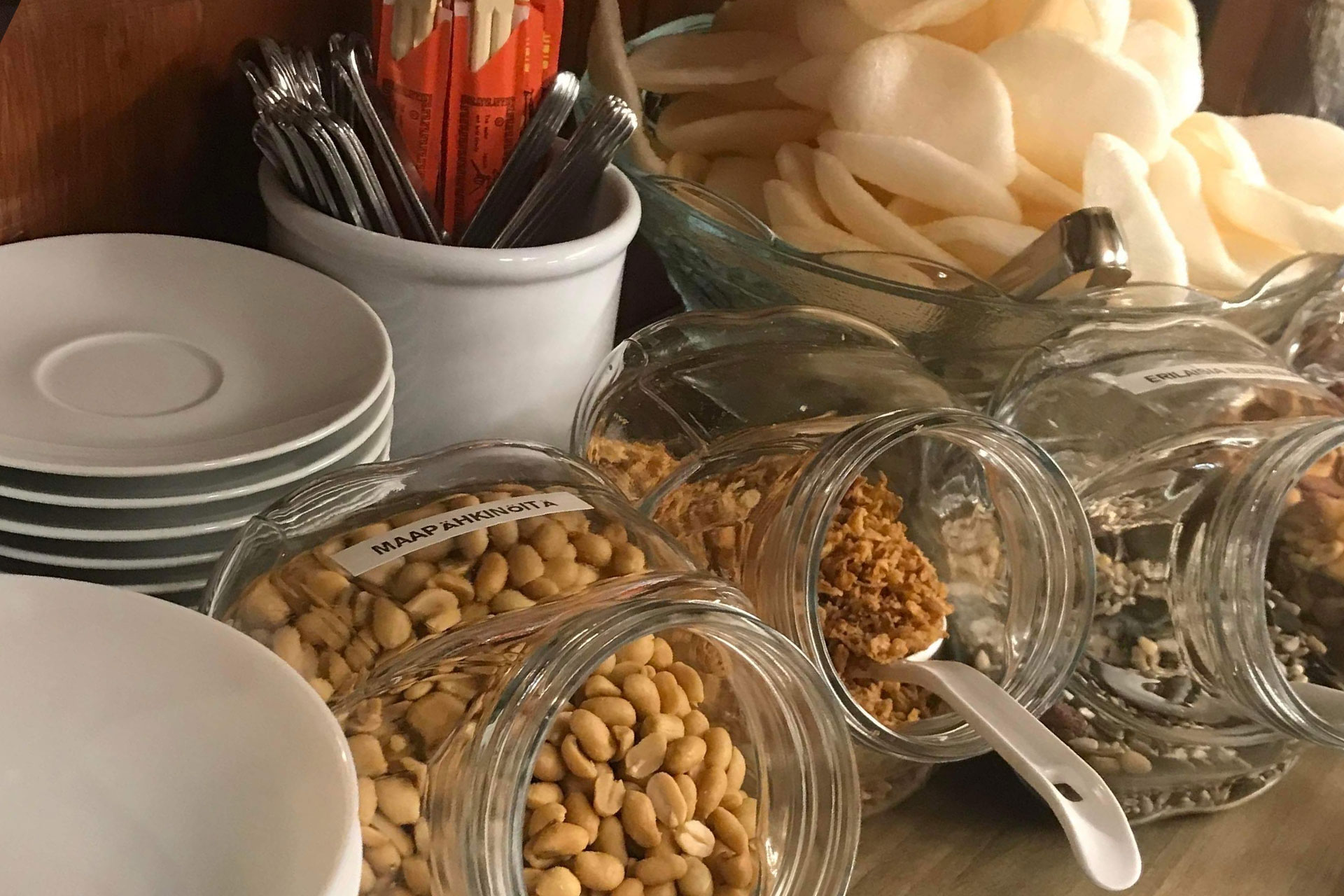 Runsaasta ja päivittäin vaihtuvasta liha- ja kasvisruokavalikoimasta on helppo löytää mieleisensä maut.
