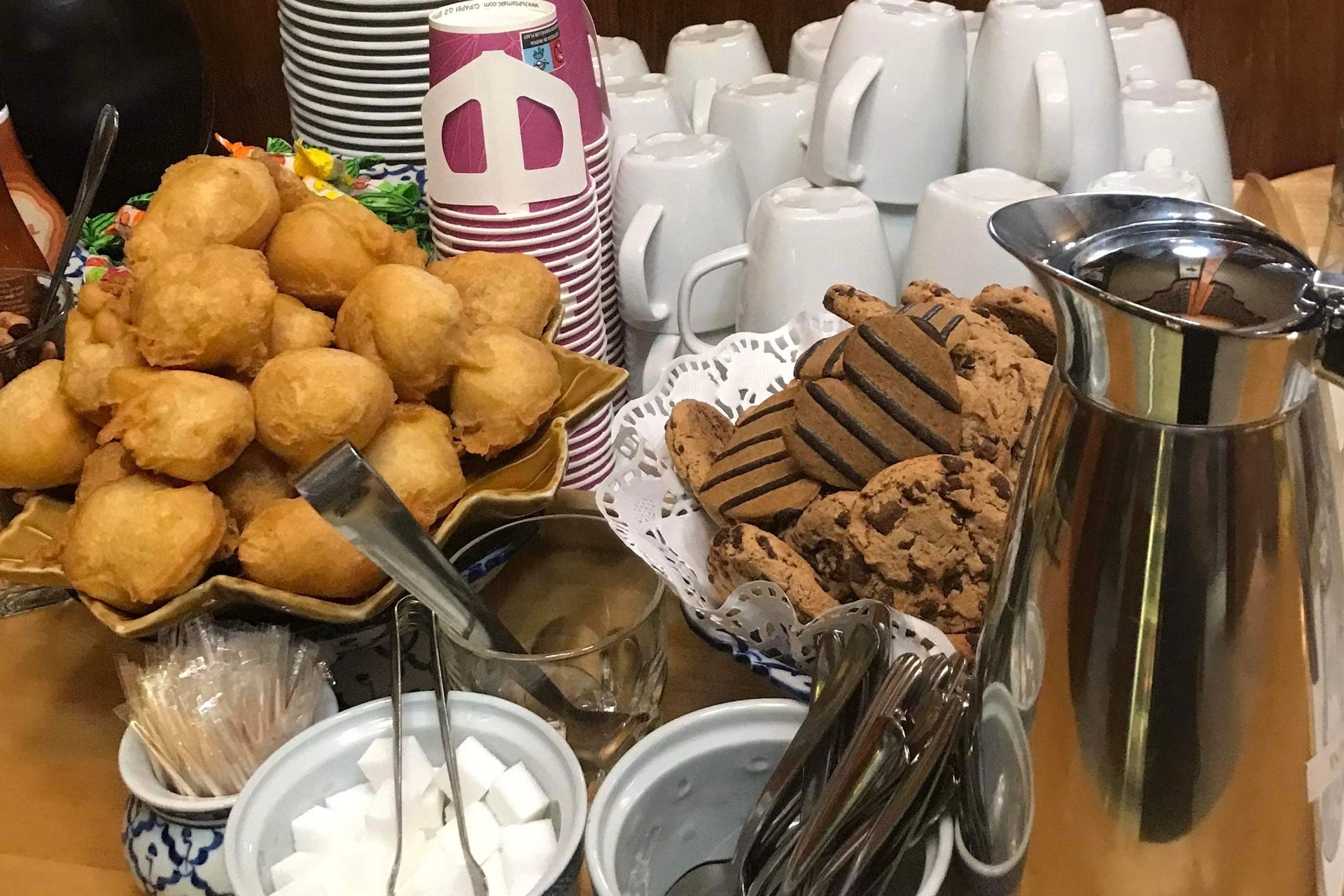 Lopuksi suu makeaksi jälkiruokapöytämme pikkumakeilla ja tuoreella kahvilla.Herkullinen thaimaalainen
