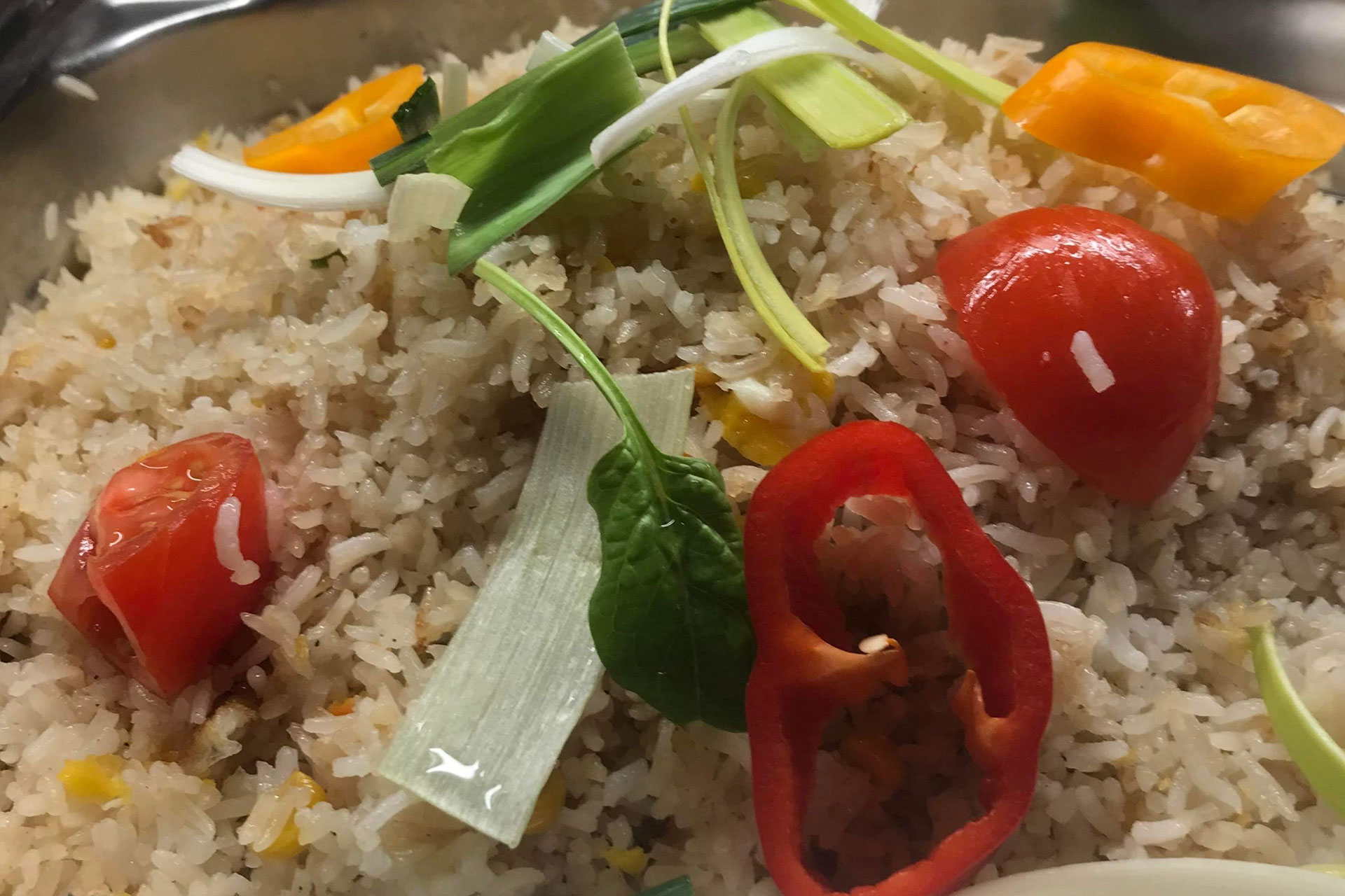 - Fried rice with shrimps or chicken or pork, incl. soya