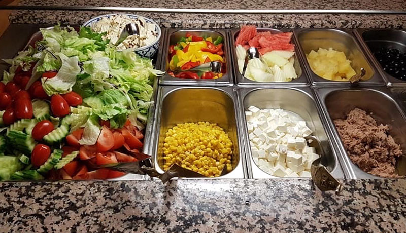 Herkullisesta salaattipöydästämme voit nauttia joko alkupaloina, pääruoan kanssa tai vaikkapa jälkiruokana, oman makusi mukaan.